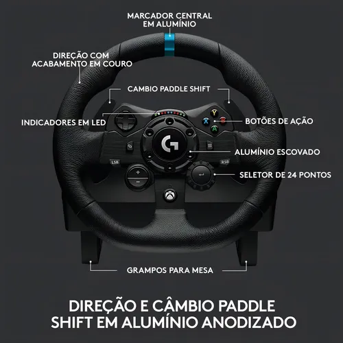 - Embreagem dupla programável: saia da linha de partida de forma mais limpa e rápida; uma embreagem dupla programável simula uma assistência de lançamento de carro de corrida real com o volante Logitech G923 ao jogar jogos compatíveis com o volante PS5.